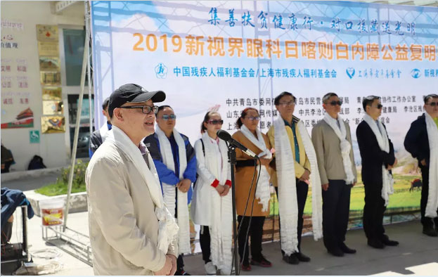 为贯彻党中央扶贫攻坚,用实际行动践行援藏工作指示,使广大农牧民白内障患者重获光明,2019年7月22日下午,由中国残疾人福利基金会、上海市残疾人福利基金会、上海市老年基金会、山东省互联网传媒集团、中共李沧区委统战部、李沧区卫生健康局、李沧区残疾人联合会、新视界眼科集团主办,上海青年志愿者协会、青岛新视界眼科医院等联合承办的“ 集善扶贫健康行 · 对口援藏送光明 ”2019新视界眼科日喀则白内障公益复明行动的落地仪式在西藏日喀则市桑珠孜区人民医院举行。